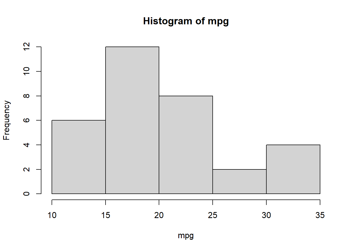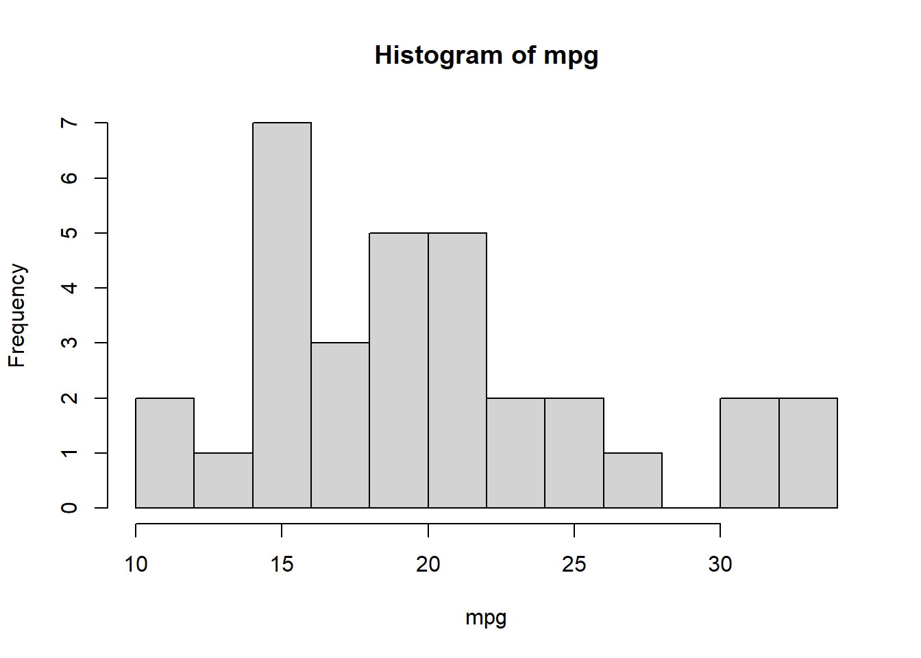 hist(x = mpg, breaks = 10)