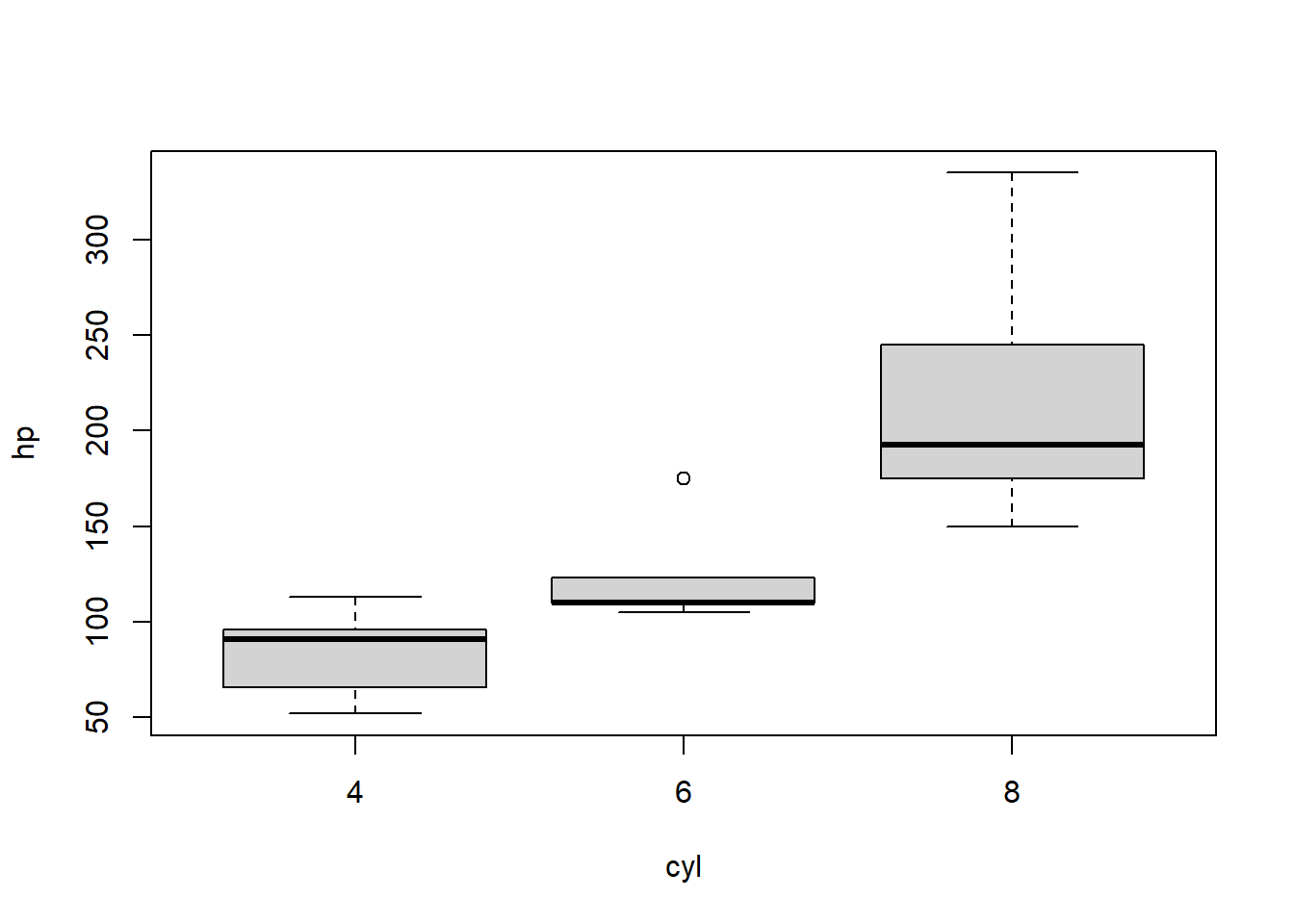 boxplot(formula = hp ~ cyl)